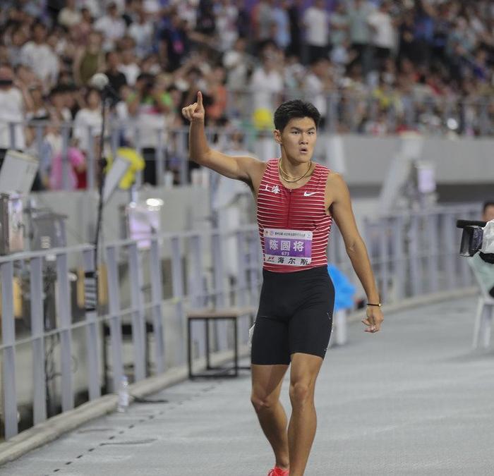8月4日,陈圆将在全国田径锦标赛男子110米栏决赛后。韩强 摄“第一次比世锦赛,自己理想的目标是可以比三枪,进入决赛。”陈圆将说。